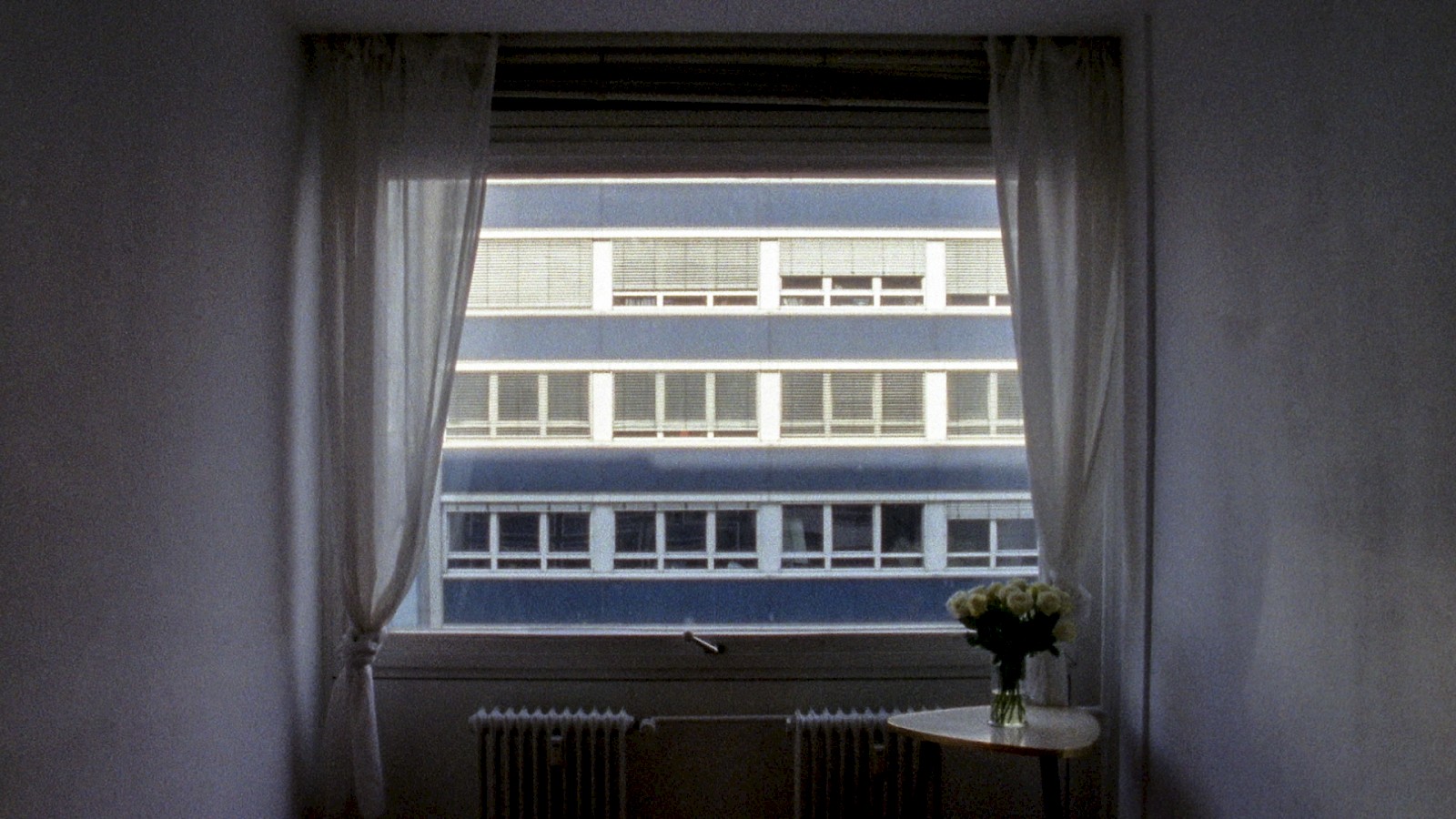 16mm I Dolby Stereo I16:9 I colour I 16’ I 2014 A window. An opposite window facade. A room. Flowers. Luise and a phone call. An action scene. A construction site. A musician. The room temperature is 21,3°C.